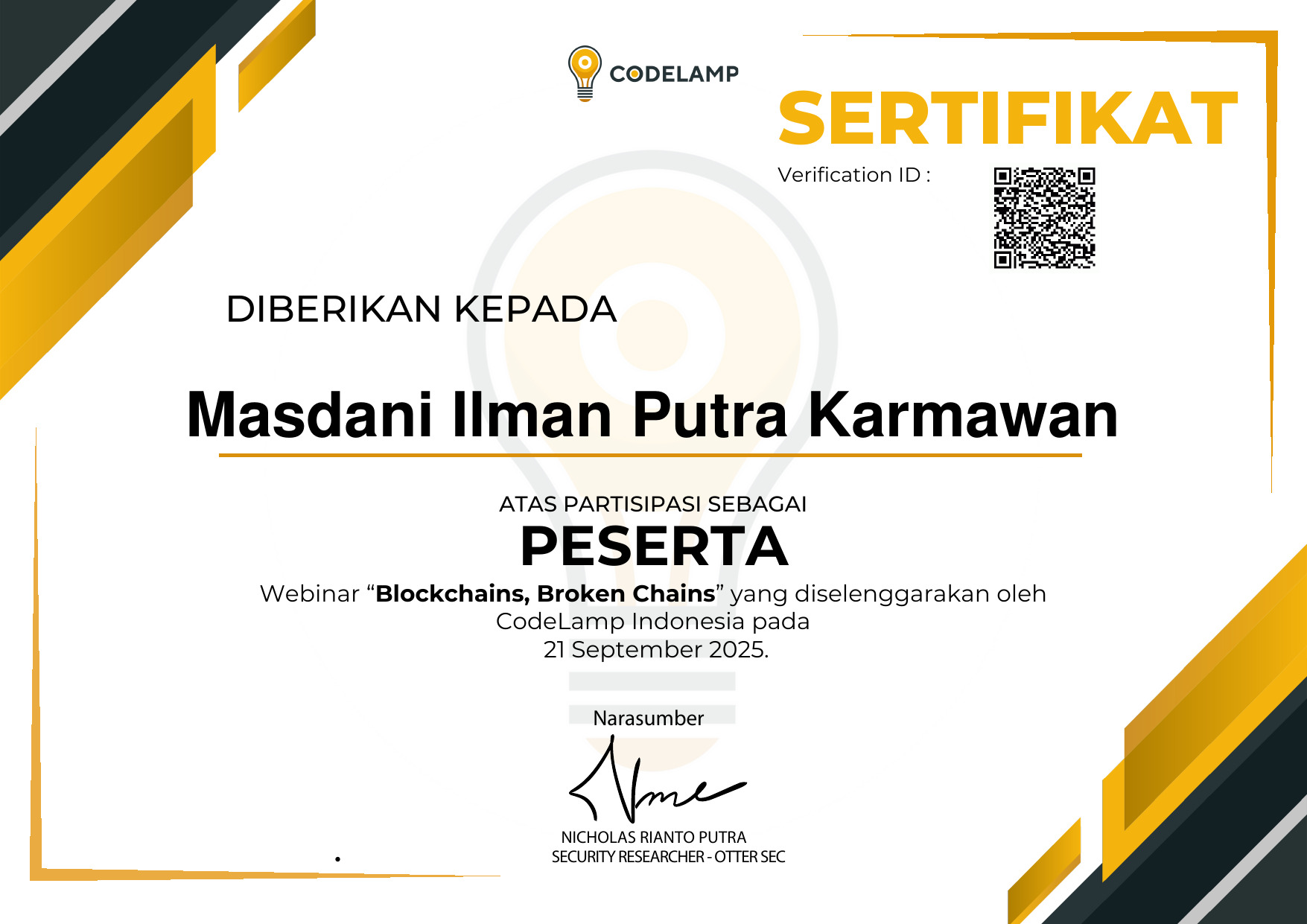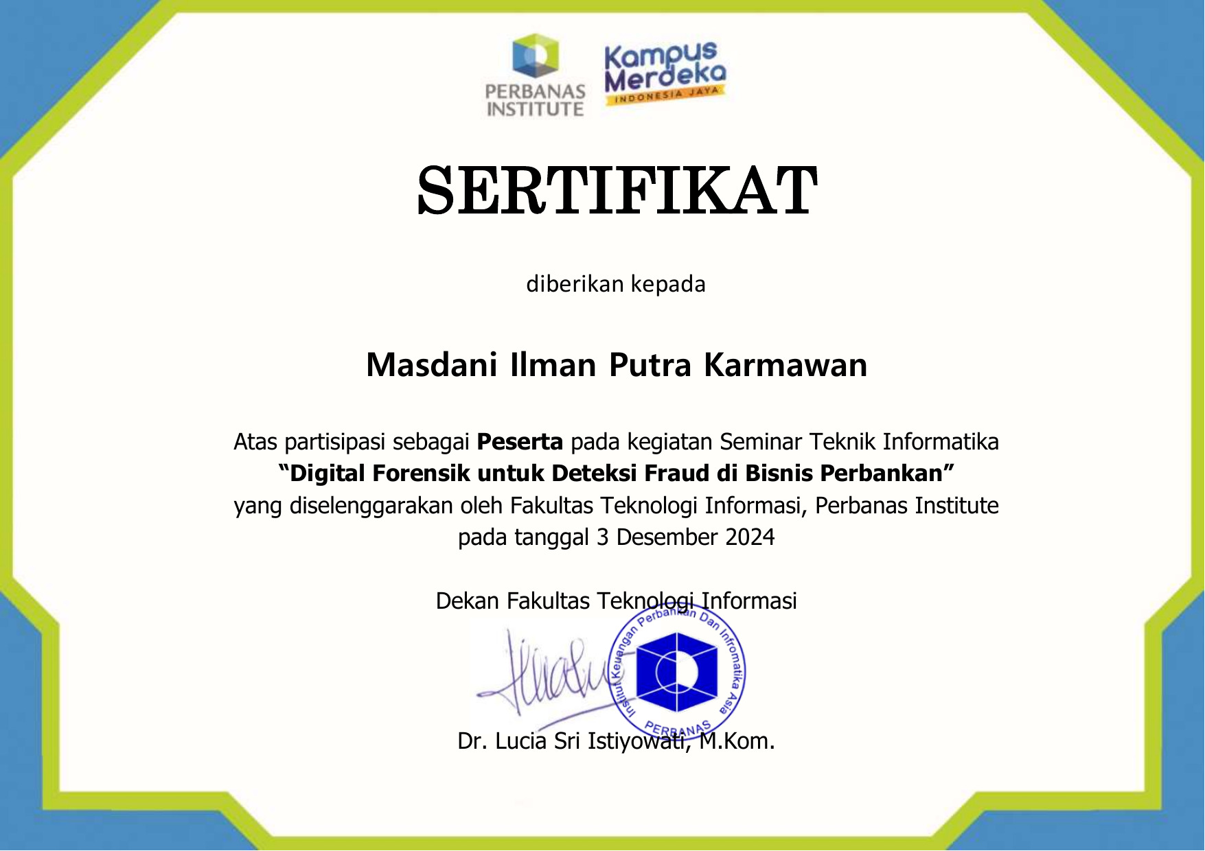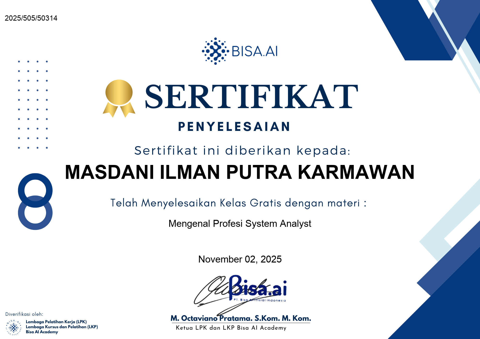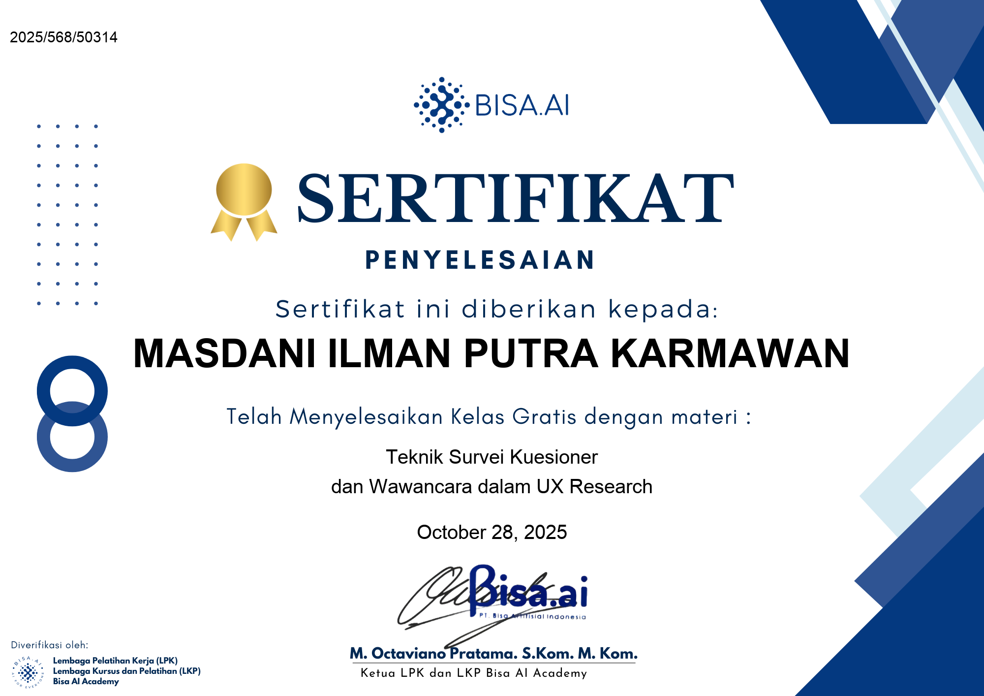 Hello! My name is Masdani Ilman Putra Karmawan.
